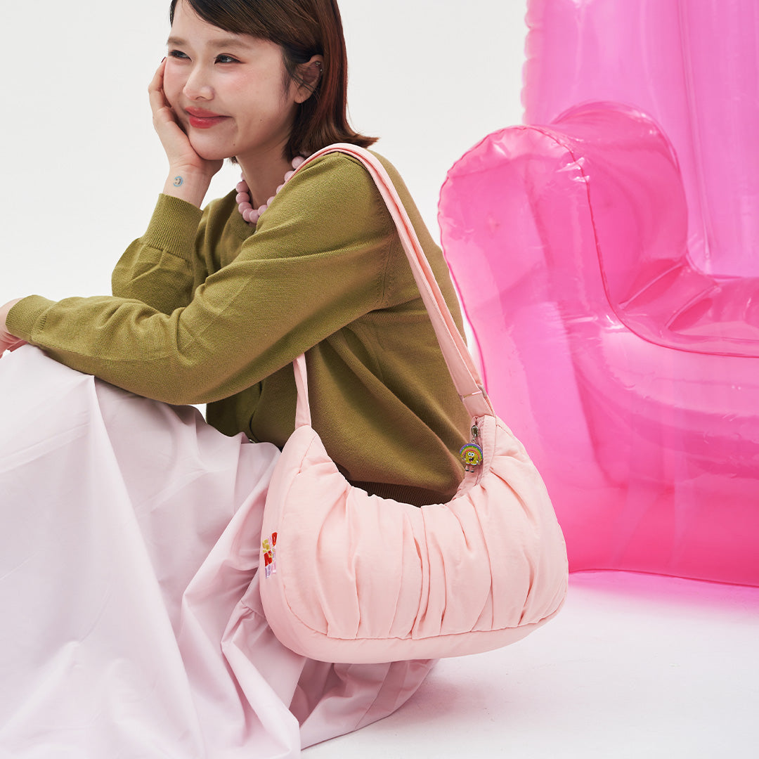 Meet the Small Croissant Sling — Imaginaaation Edition.An iconic twist on our best-selling bag, reimagined in a glazed peachy-pink finish with SpongeBob’s signature sparkle. Featuring...